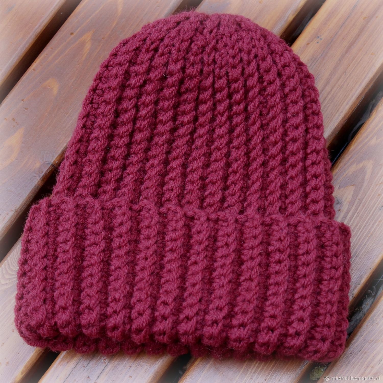 Вязаная шапка бини английской резинкой