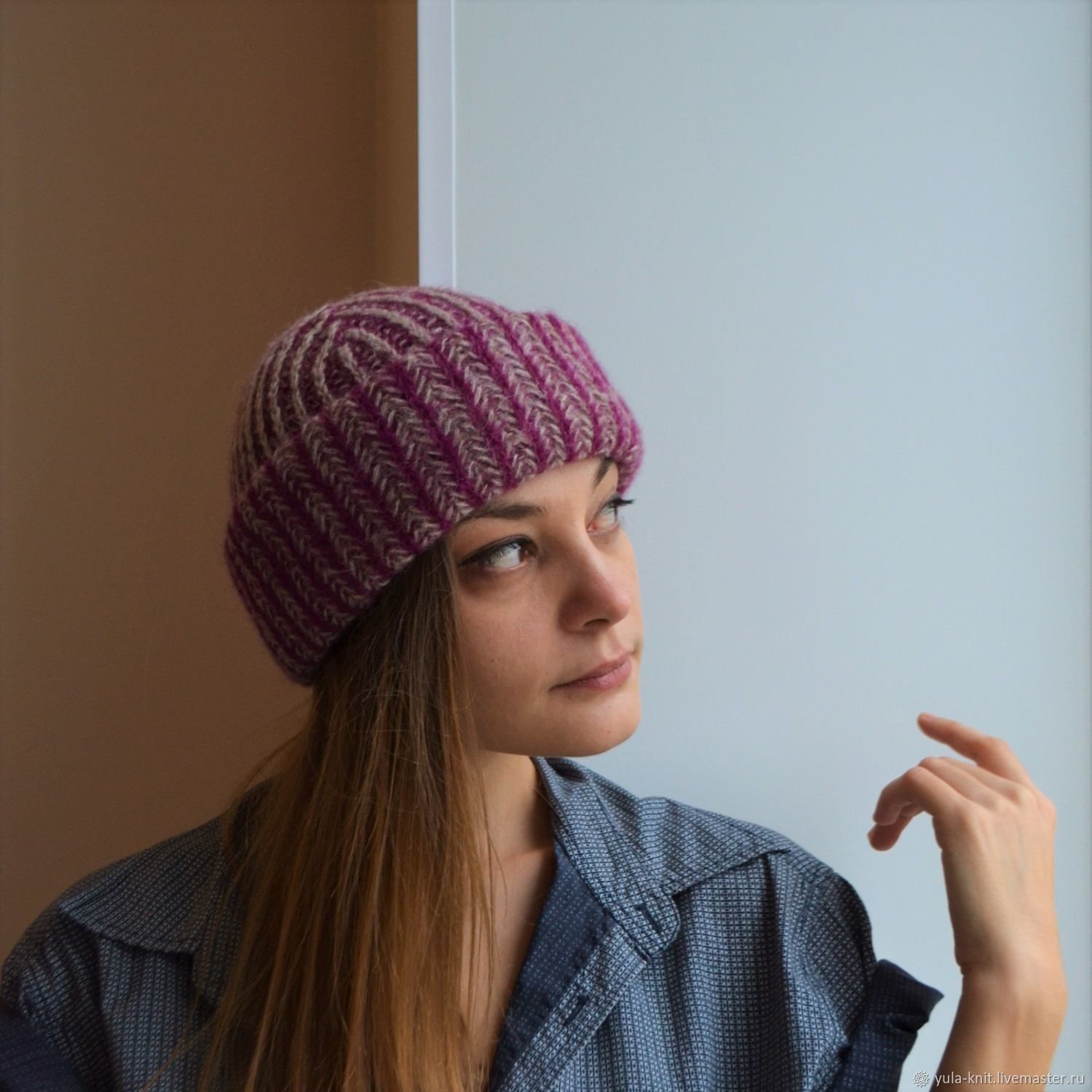 Вязаная шапка английской резинкой
