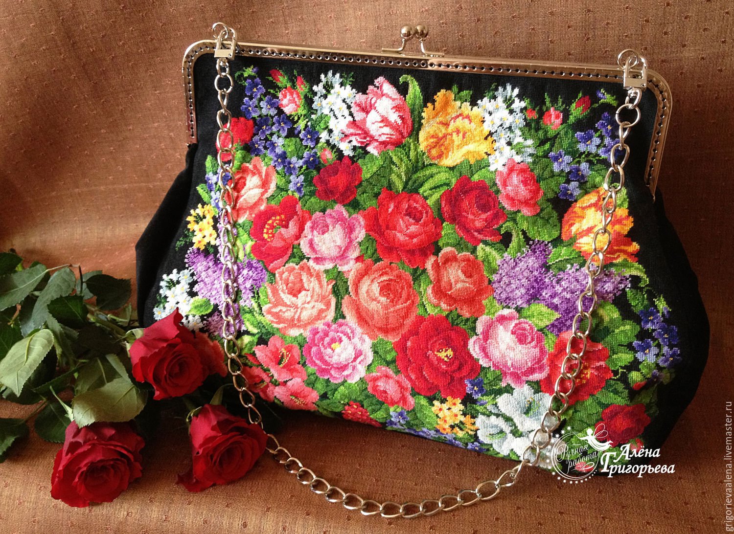 Сумочка вышивка крестом цветы
