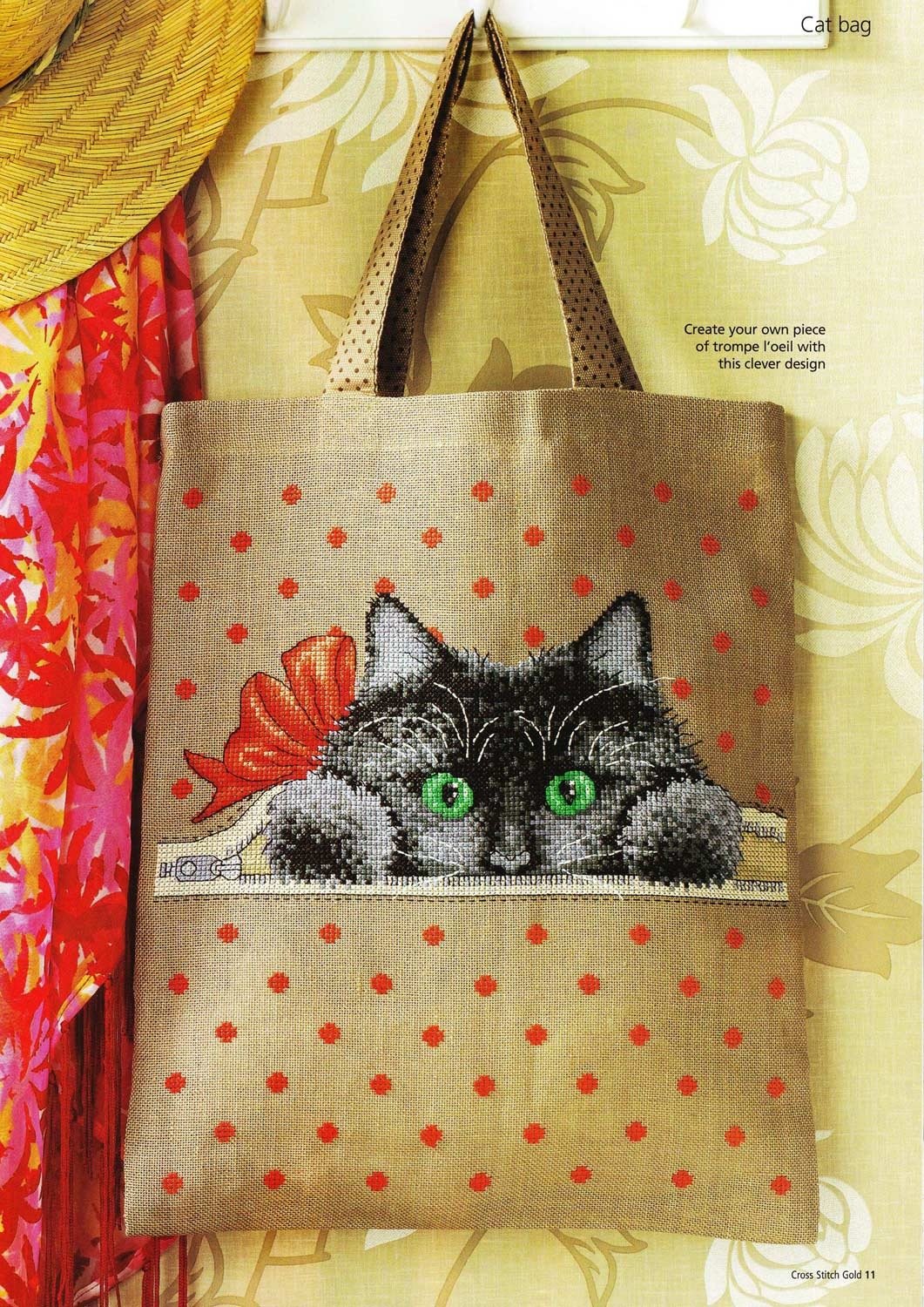 Вышивка крестиком кот на сумке