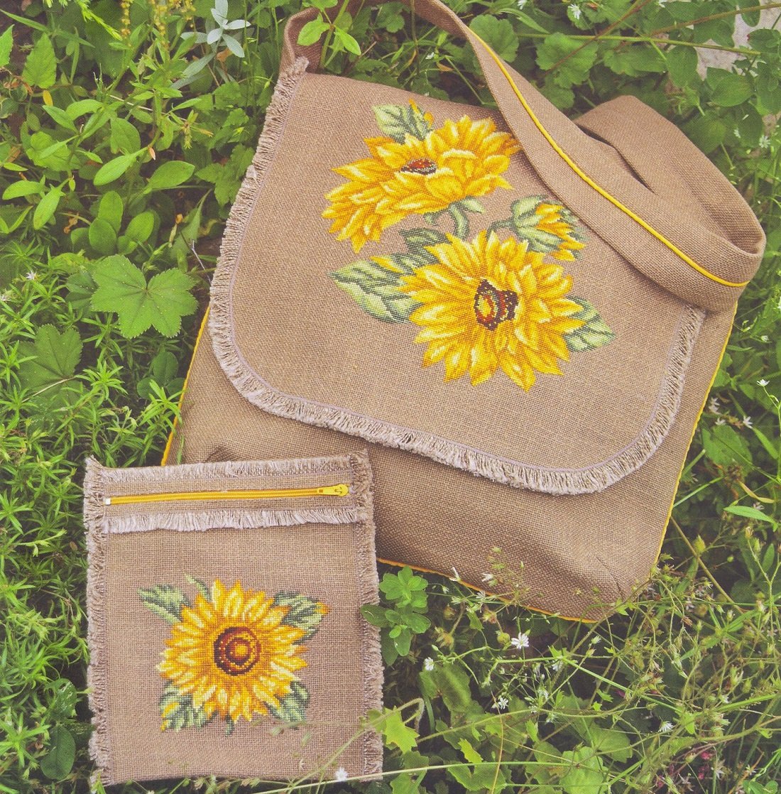Вышивка на сумку Подсолнухи