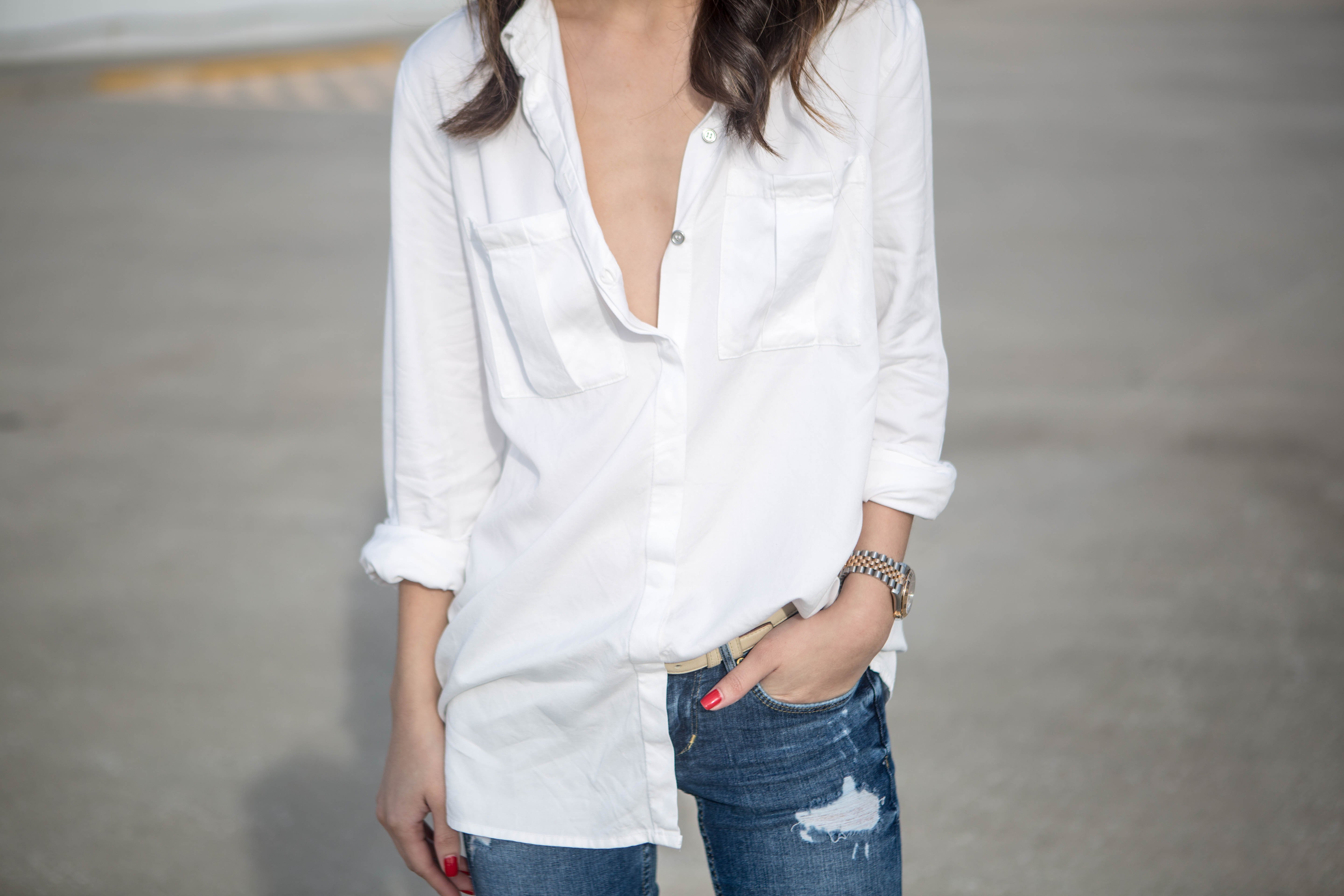 Образ на лето с большой белой рубашкой и топ