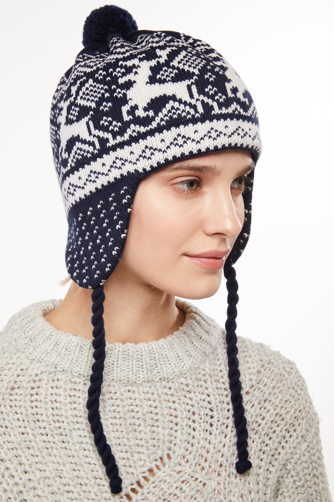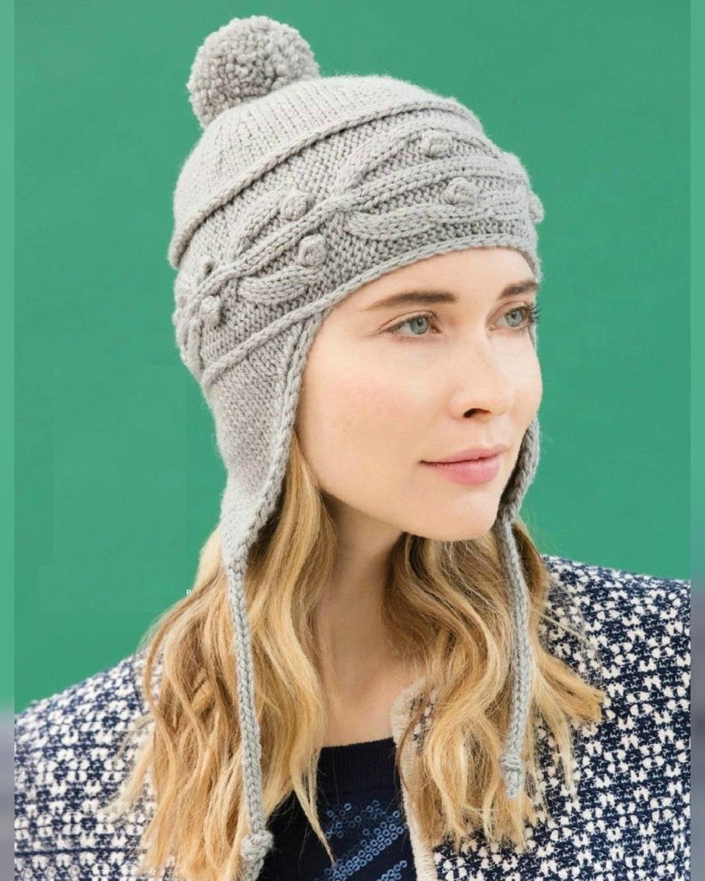 Вязаная шапка с завязками