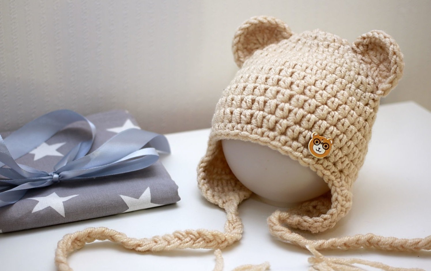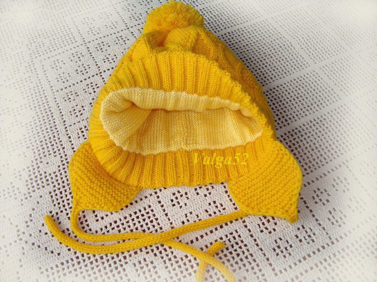 Детские вязаные шапки с завязками