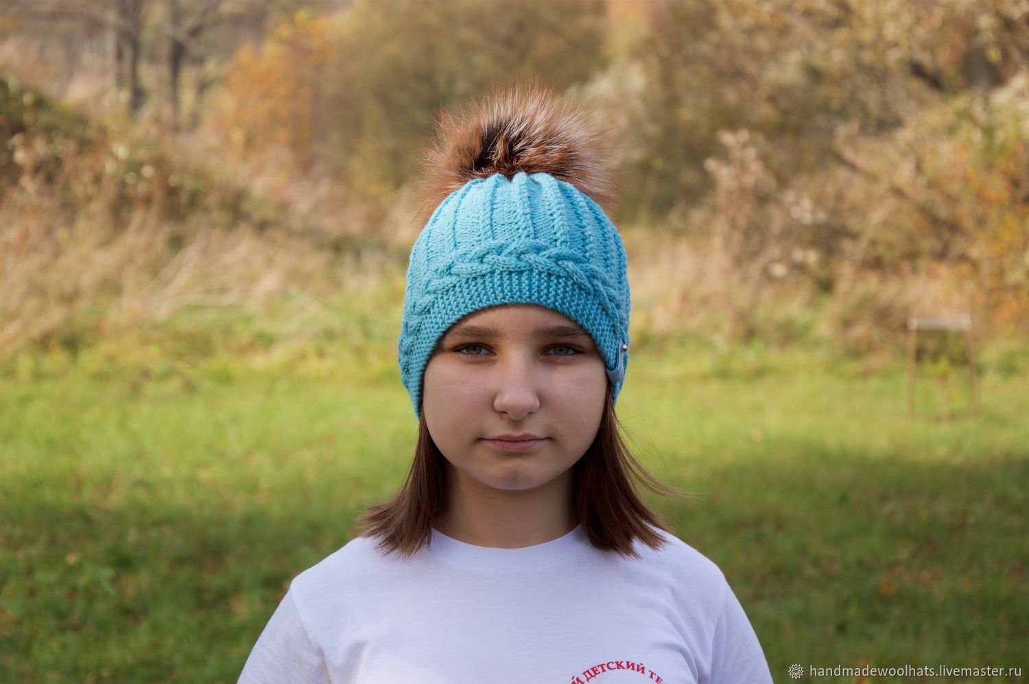 Шапка вязаная объемная с помпоном