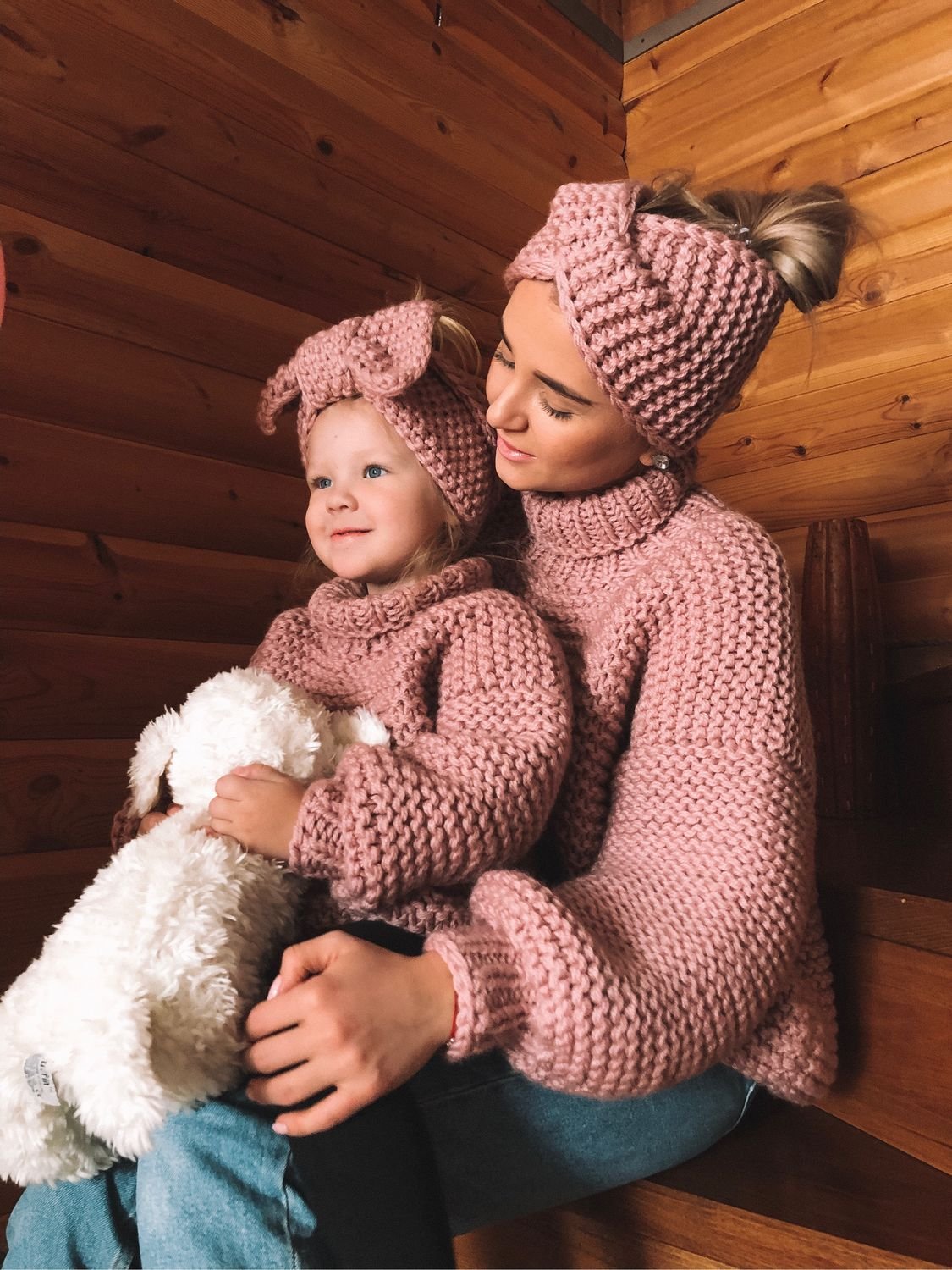Мама с дочкой в свитерах
