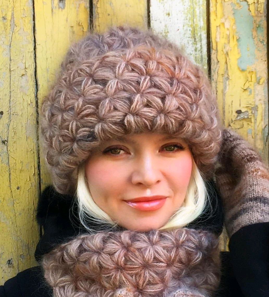 Шапка из мохера узором звездочки