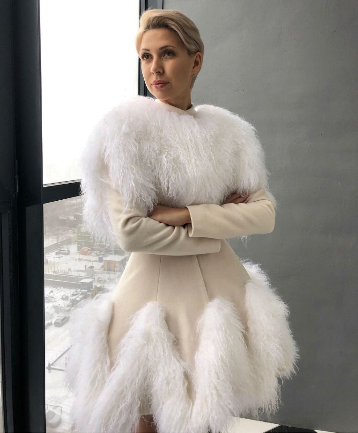 Объемная шуба из ламы
