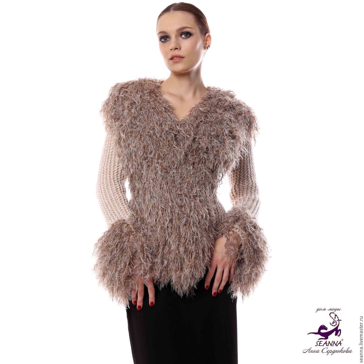 Кофта с воротником меха ламы
