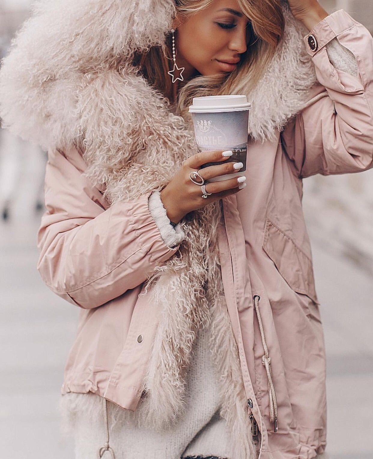 Пуховик с мехом ламы