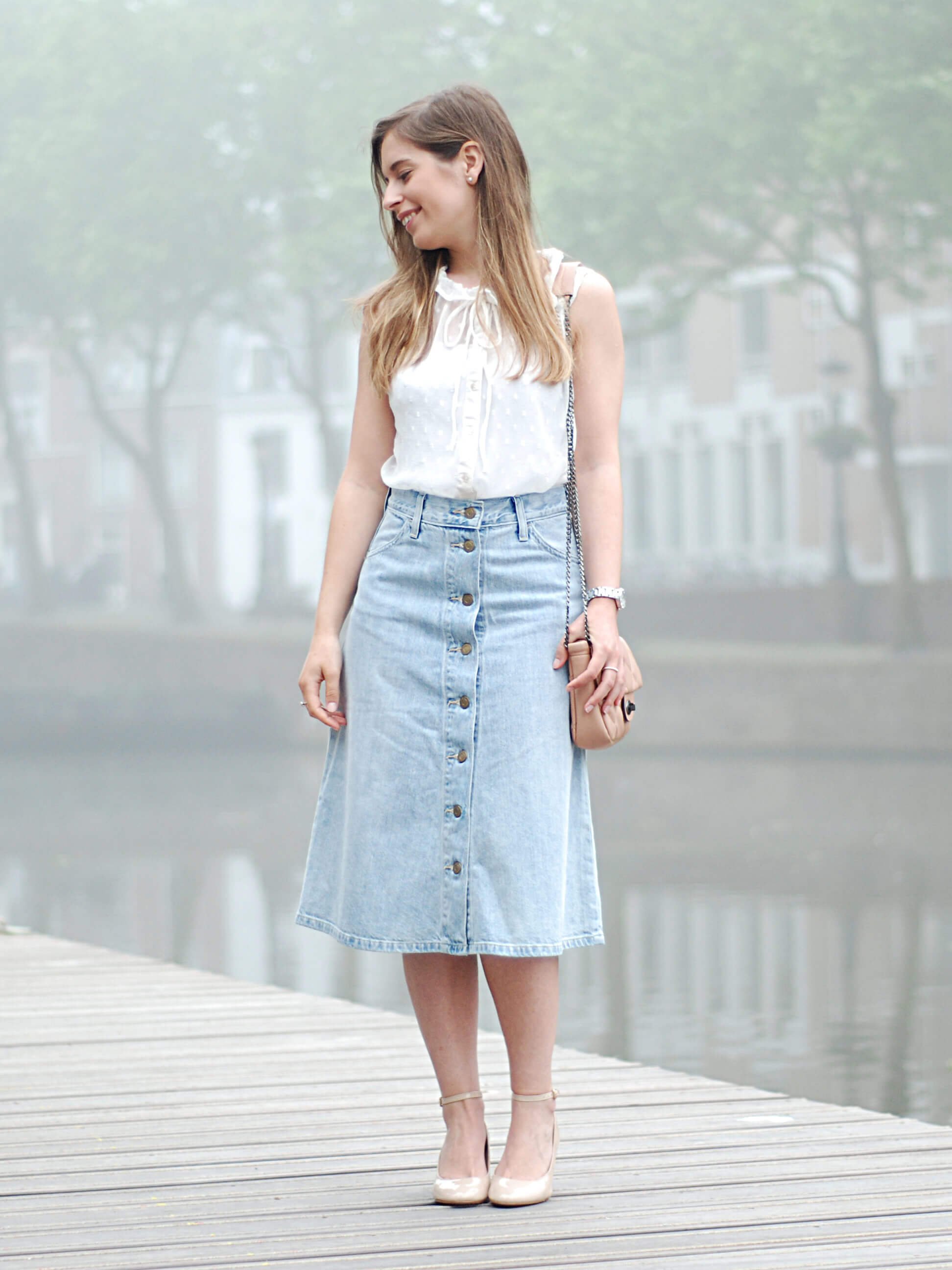 Образы с джинсовой юбкой миди
