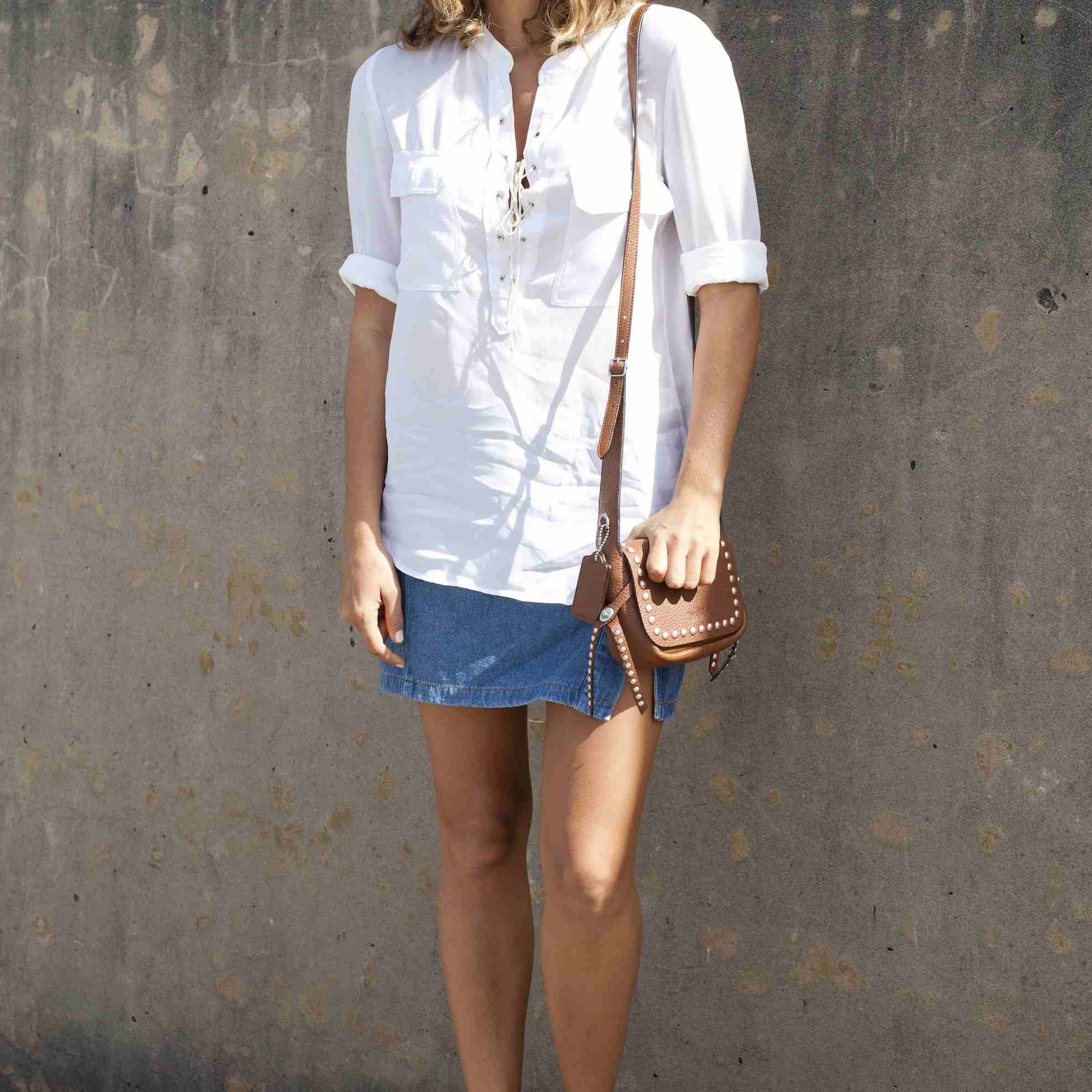 Джинсовая юбка с белой рубашкой