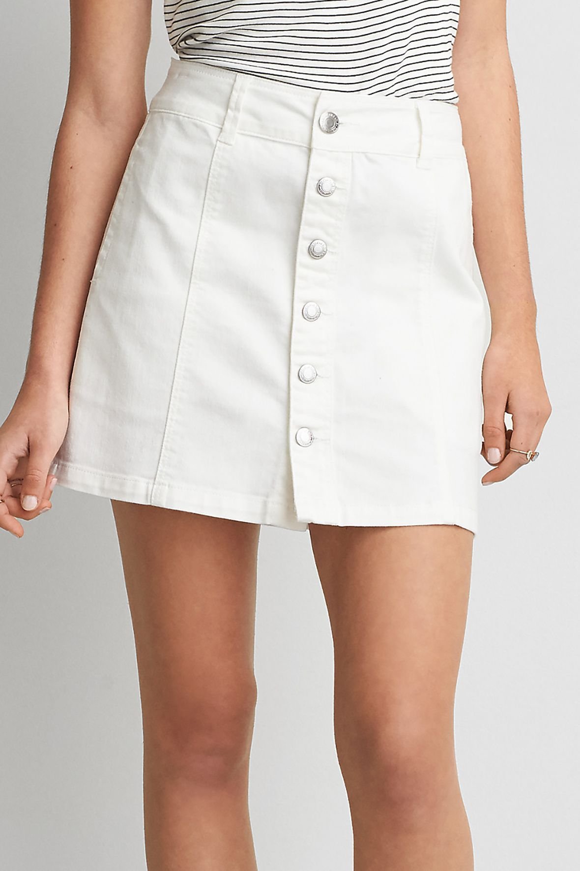 Короткая белая джинсовая юбка