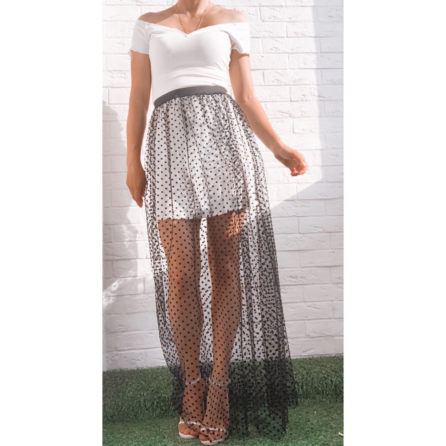 Белое платье с прозрачной юбкой