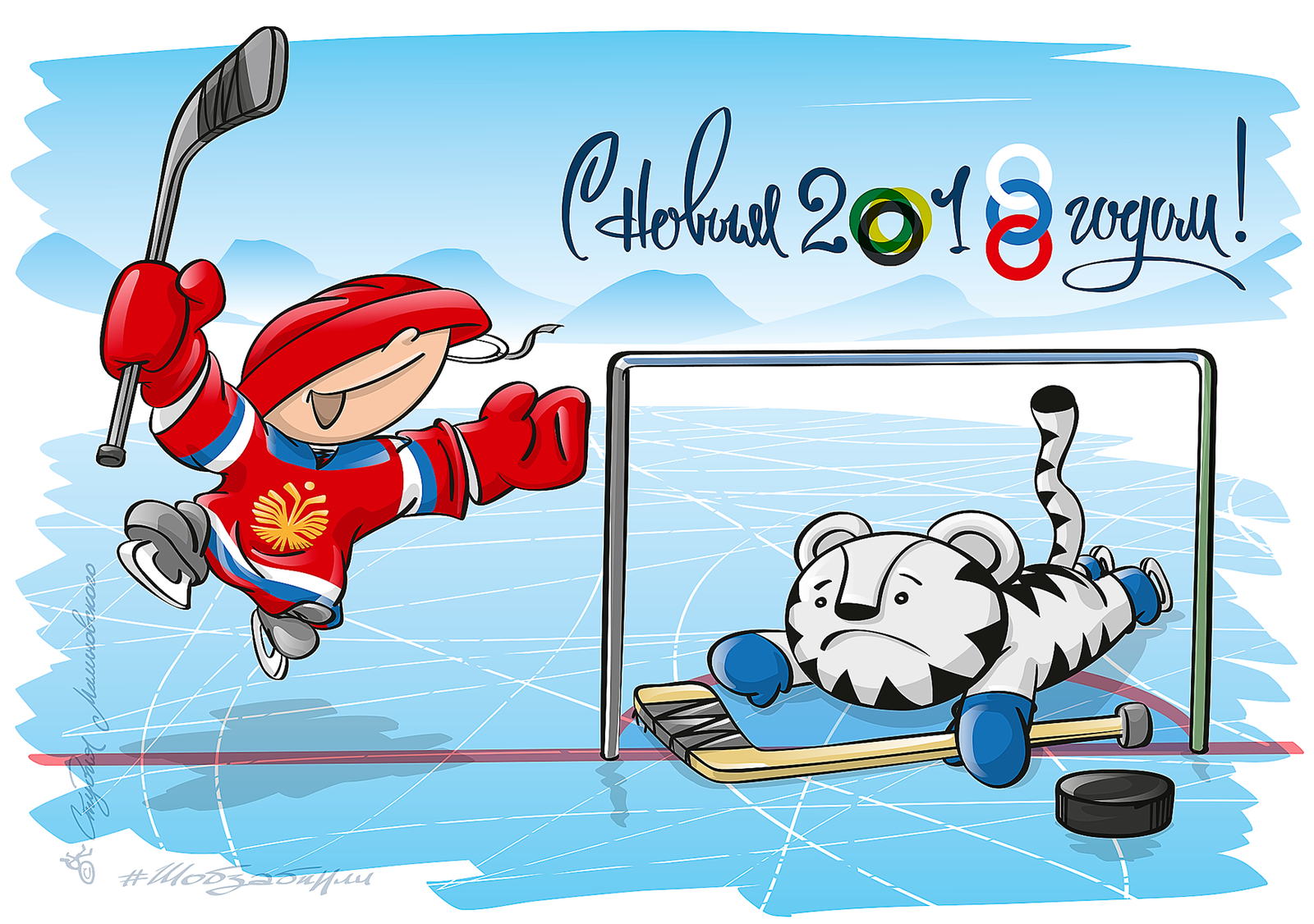 Новогодние открытки хоккей