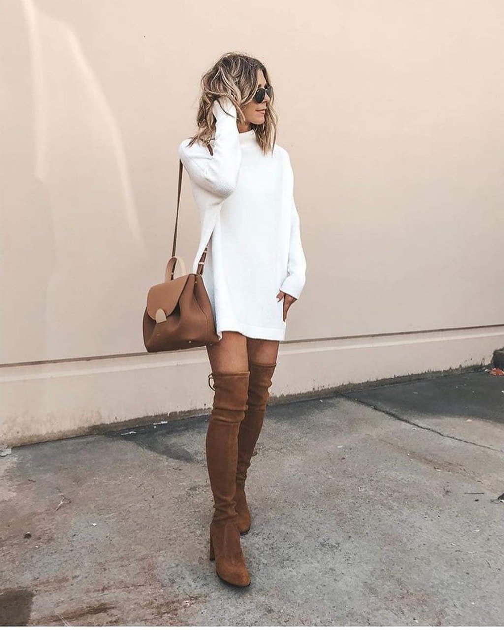 Платье оверсайз с ботфортами