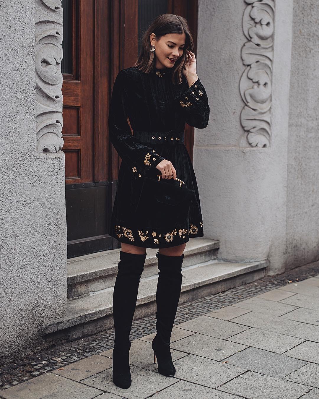 Мини платье с ботфортами