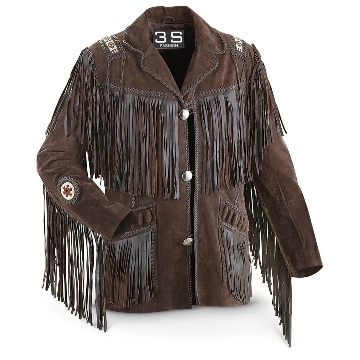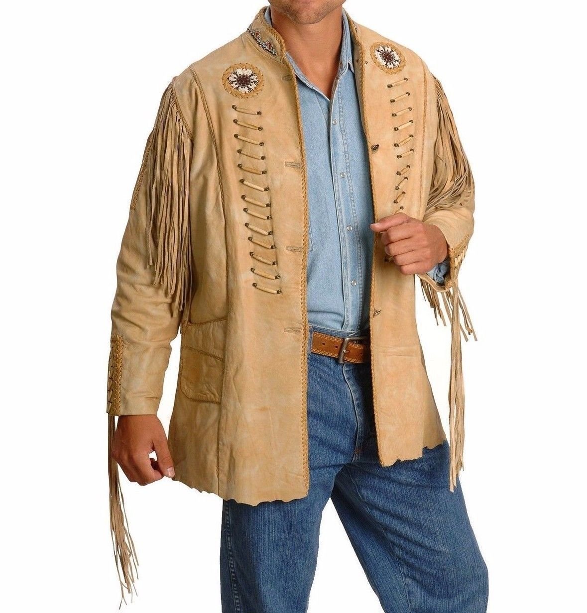 Пальто , куртки nekastar Cowboy) New Mens Western Style Cowboy Suede Leather Jacket with Fringes and Beads