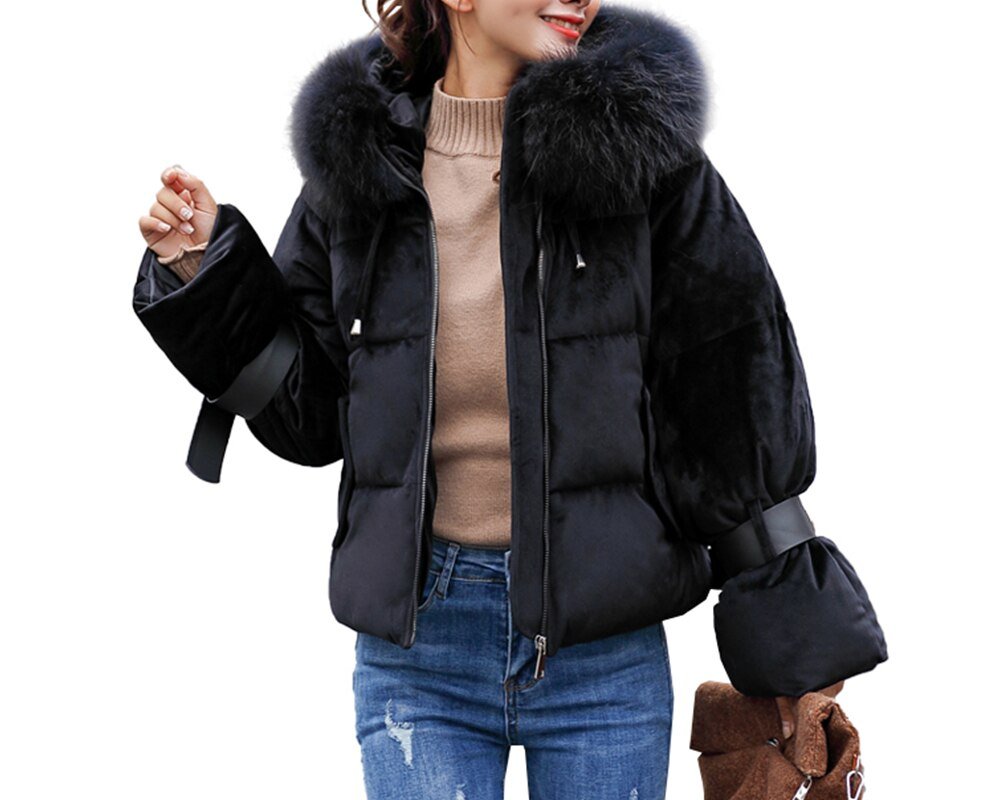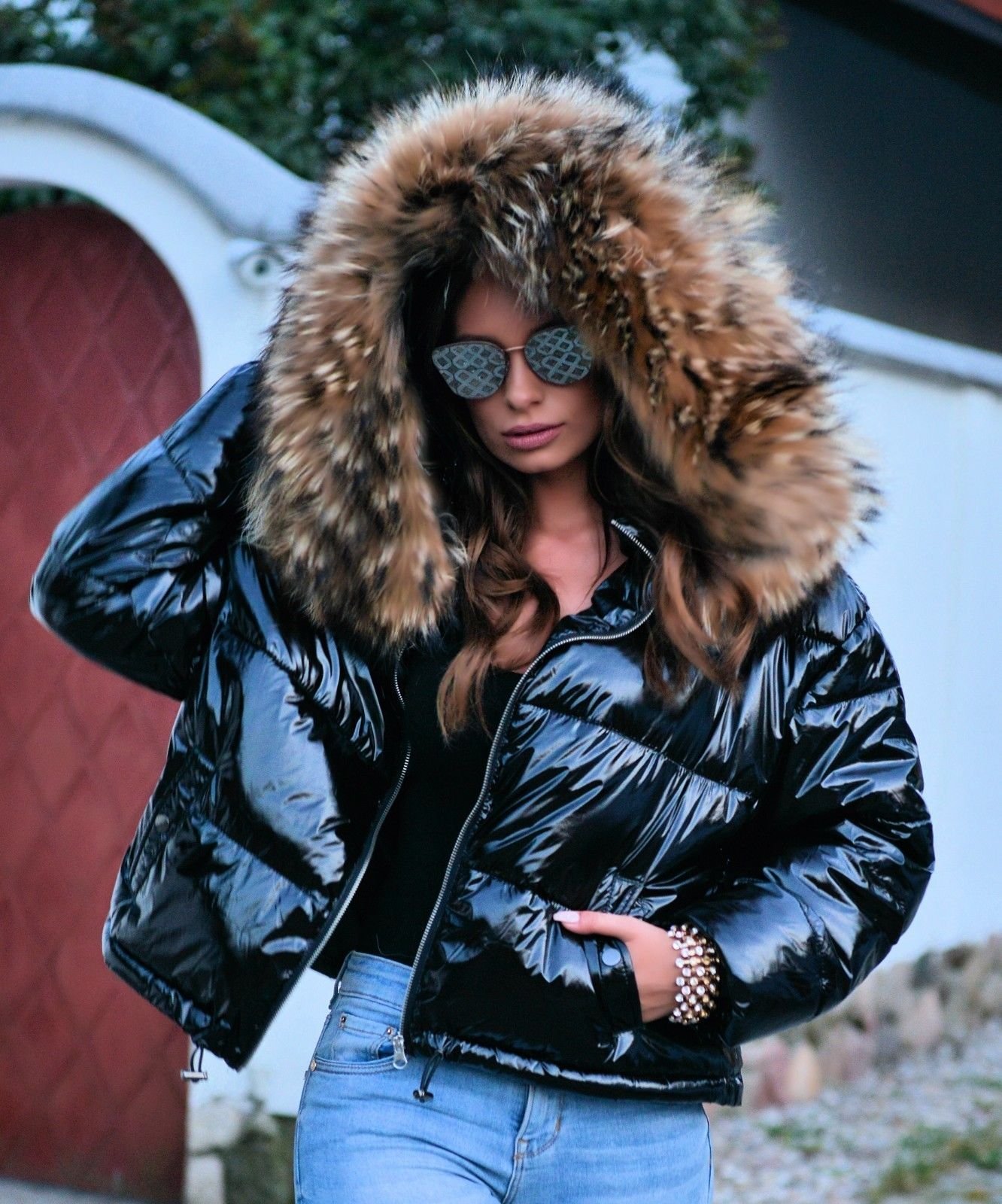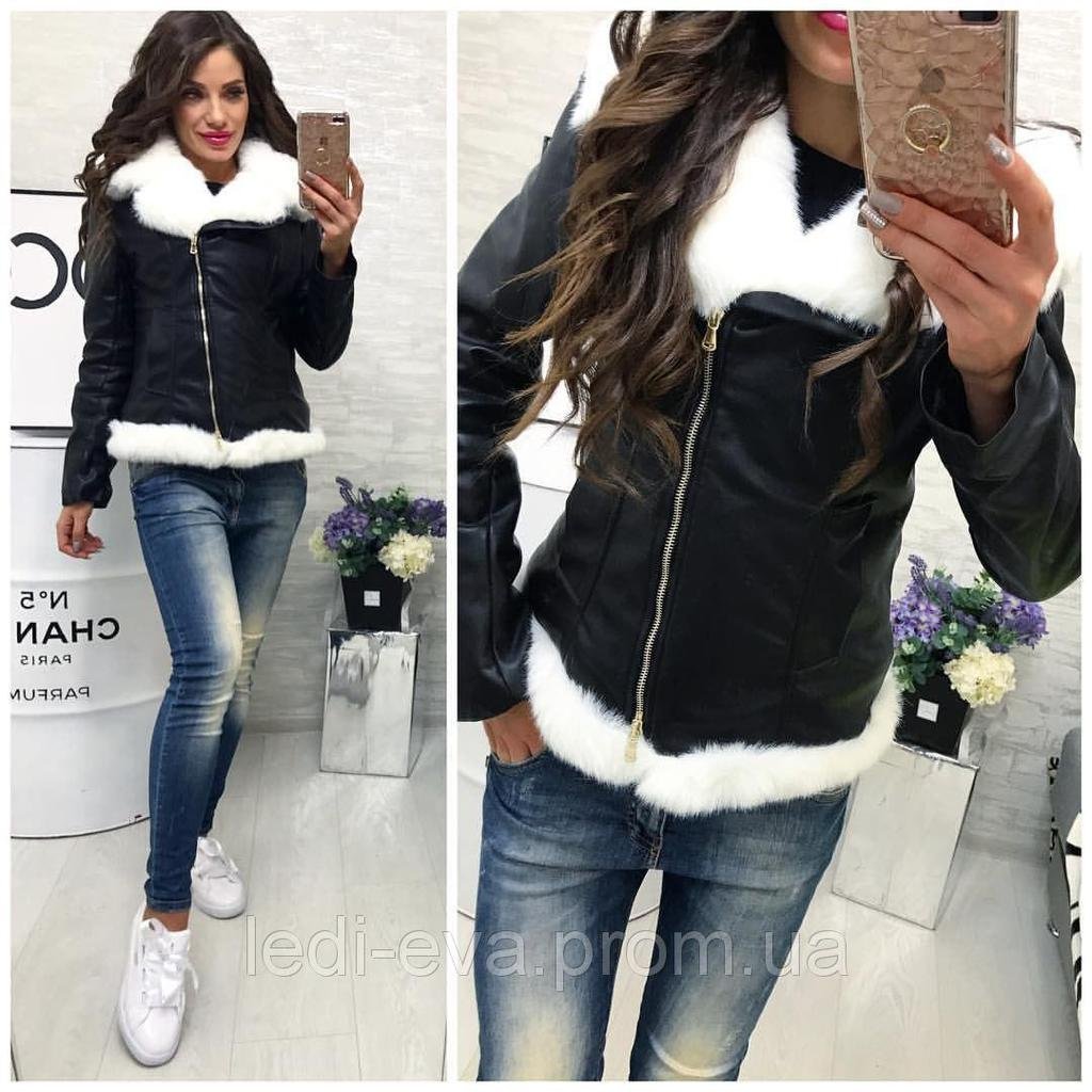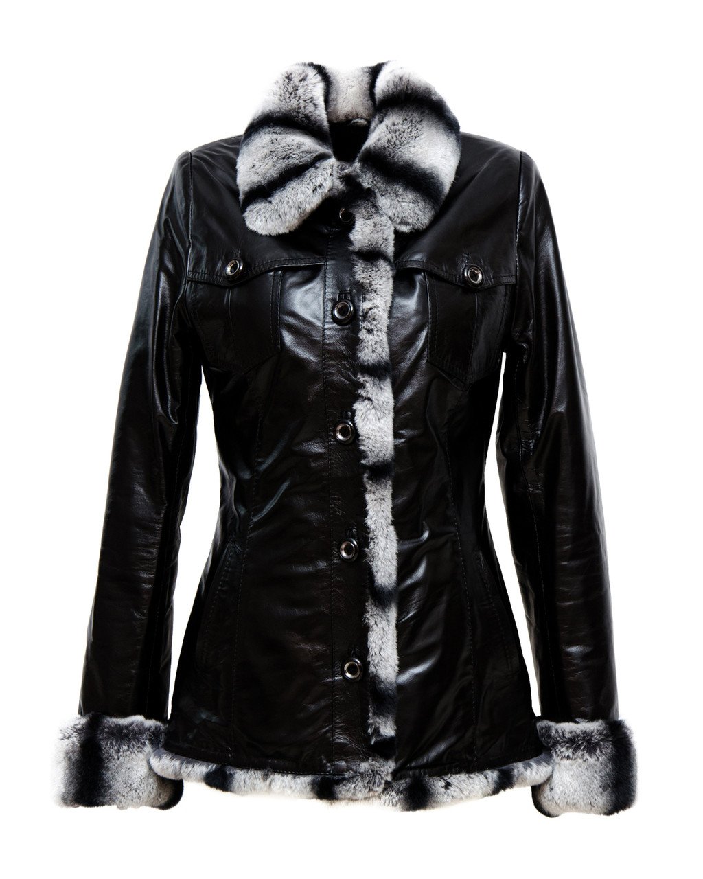 Кожаная куртка до колен с натуральным мехом на капюшоне
