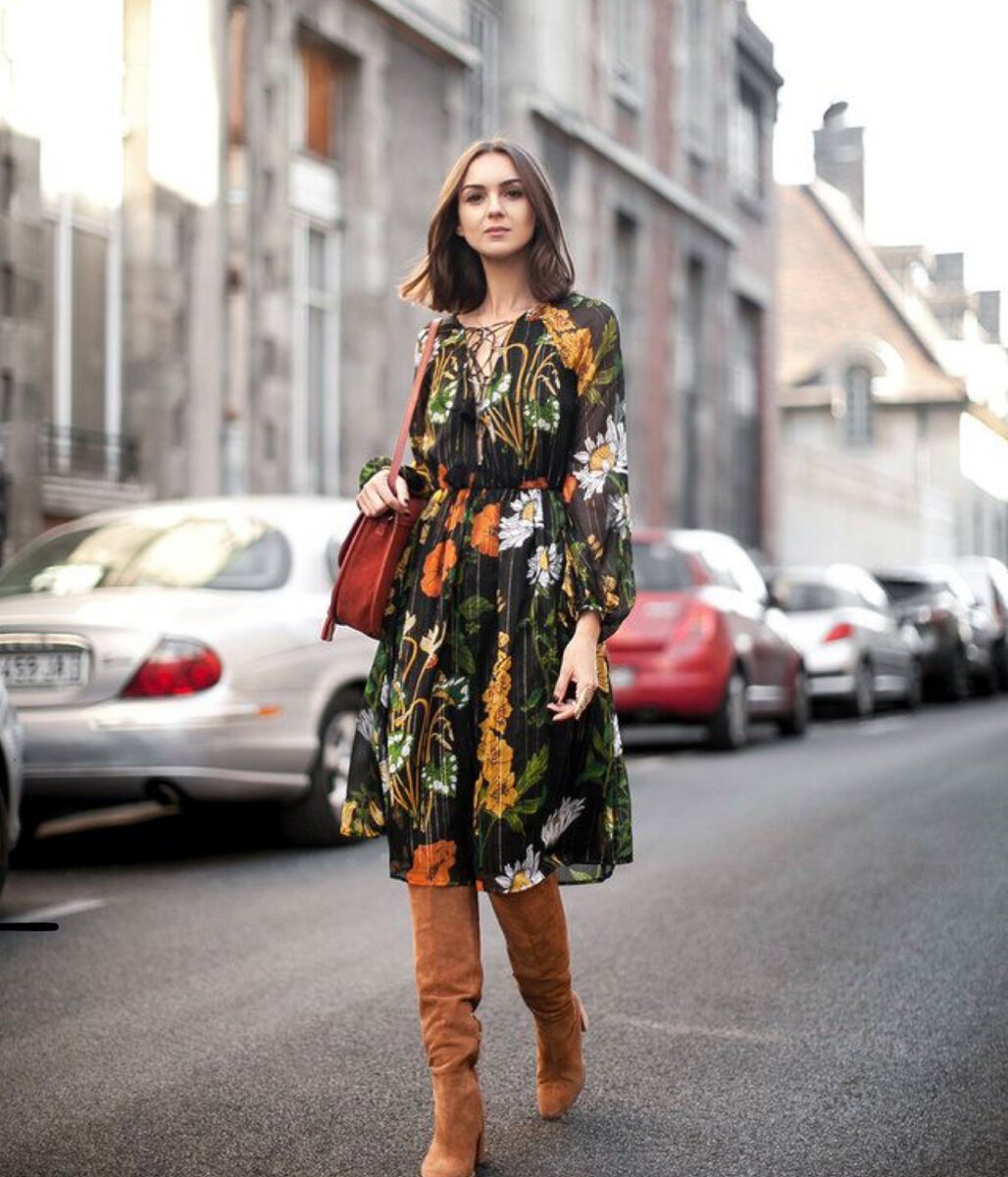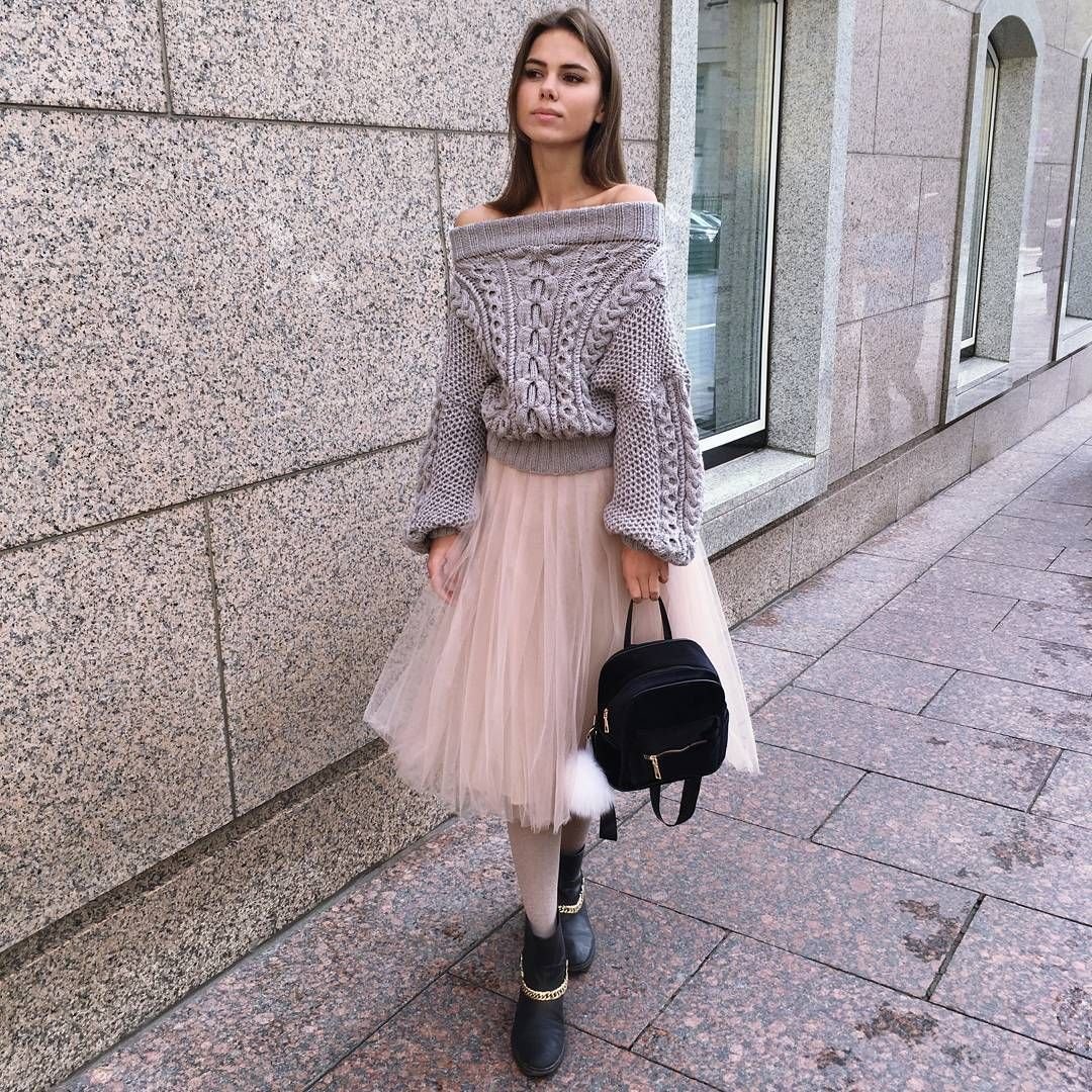 Шифоновое платье и свитер [52 фото]