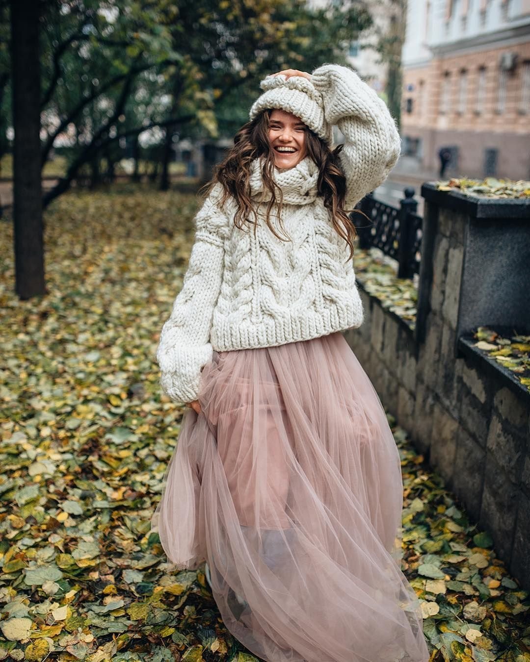 Шифоновая юбка со свитером